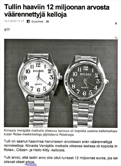 Ulkomailta tuodut piraattikopiot jäävät tullinn haaviin, mutta kun KOTIMAISET piraattikopiot valmistetaan suomalaisissa tehtaissa, kuka silloin puuttuu rikoksiin?